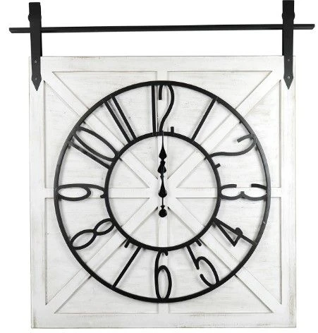 Barn door style wooden wall clock