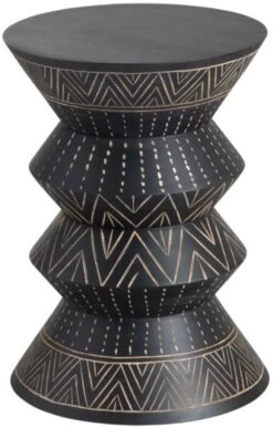 Crafted with utmost precision and attention to detail, the Borneo Accent Table embodies the rich cultural heritage of tribal motifs. The intricate tribal print, meticulously applied to the tabletop, adds a touch of elegance and cultural significance to the design. Each brushstroke tells a story, evoking a sense of wanderlust and curiosity. The unique shape of the table sets it apart from traditional designs. Its organic curves and contours echo the beauty of nature, providing a refreshing departure from conventional furniture. The black finish lends a touch of sophistication and modernity, while its rustic elements exude warmth and charm. Practicality meets artistic expression in the Borneo Accent Table. Its compact size allows for seamless integration into any room, be it your living area, bedroom, or even an office space. The tabletop provides ample space for displaying decorative items, cherished mementos, or a stylish table lamp. Meanwhile, the sturdy base ensures stability and durability, making it both functional and aesthetically pleasing. Elevate your interior decor with the Borneo Accent Table. Let its tribal print and rustic style transport you to far-off lands, infusing your space with an air of mystique and cultural appreciation. Whether placed as a standalone piece or combined with other eclectic elements, this table will become an instant conversation starter and a cherished focal point. Please note that due to the handcrafted nature of this product, slight variations in the tribal print and finish may occur, further enhancing its unique character. Embrace the spirit of the Borneo Accent Table and let it transform your space into a haven of tribal-inspired elegance and rustic charm.