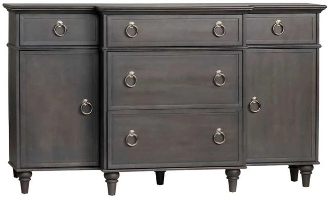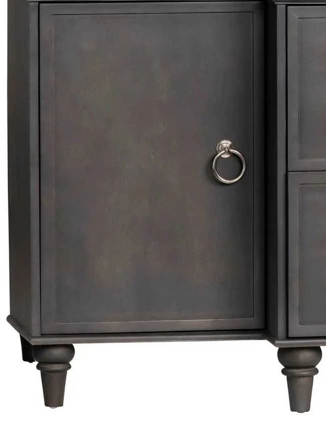 Galloway smoke grey breakfront 5 drawer 2 door credenza from Crestview Collection.