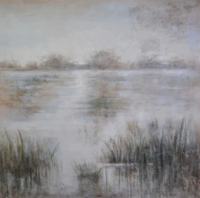Hand painted canvas with silver gallery frame