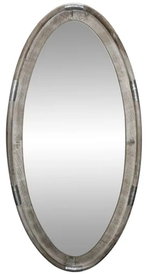 Wooden wall mirror with galvanized metal details
