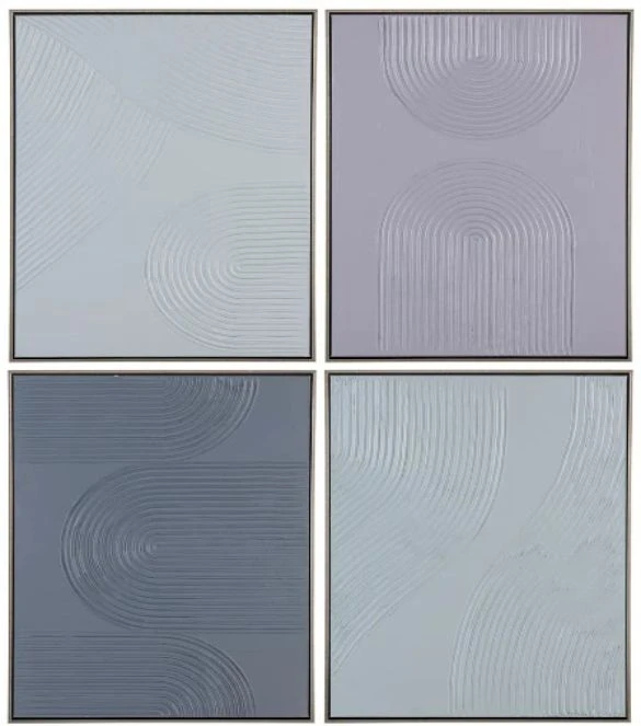 The blend of colors and textures in each painting is a true work of art, with each brush stroke adding depth and dimension to the canvas. The result is a set of four paintings that complement each other beautifully, while also making a statement on their own. The silver frames add a touch of elegance to the paintings, while also complementing the pastel color scheme. Hang them together to create a cohesive look, or spread them out throughout the room to add color and texture to multiple spaces.