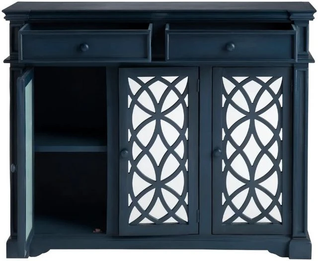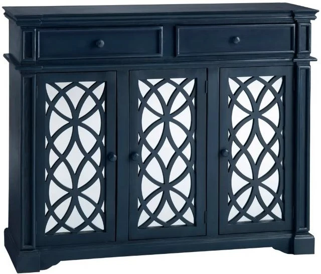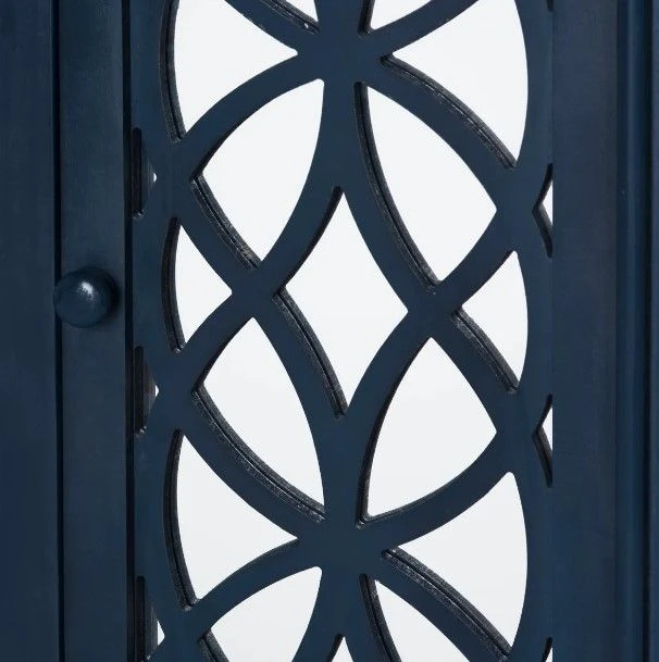This sideboard truly stands out thanks to its distinctive design, showcasing striking geometric patterns on the doors, and the incorporation of mirrors on each door that not only reflect light but also create an illusion of spaciousness.